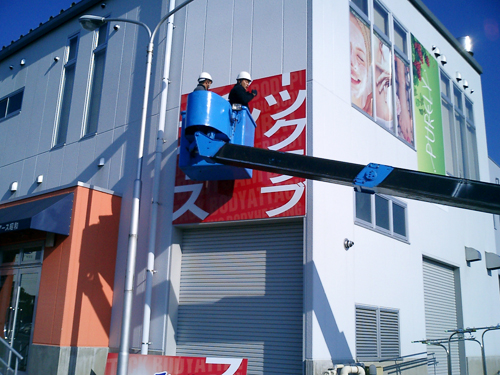 ジュン企画が施工させていただいた、ピュアリー様の看板が遠くから目立つので、同じように遠くから「ブルーアース」の看板も見えるようにしたいというご希望です。