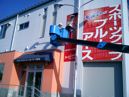 昭和町にある総合スポーツクラブ「ブルーアース、スポーツSPA」様は、以前同施設内にあるピュアリー様の看板を施工したつながりでジュン企画にご依頼していただきました。