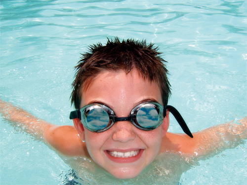 プールの施設入り口そばに設置した壁面看板C。文字は必要ないとのことでしたので、ホームページで使用していたスイミングの写真を使用して、統一感が出るようにしました。イメージ的に「ここに何があるか?」が一目でわかるようになりました。