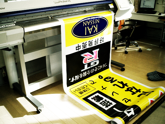 最近では、甲斐日産自動車さまの専属デザイナー松井氏の手がけた店舗デザインの看板の施工を担当したり、車両の看板(カーマーキング)などの発注をいただいております。